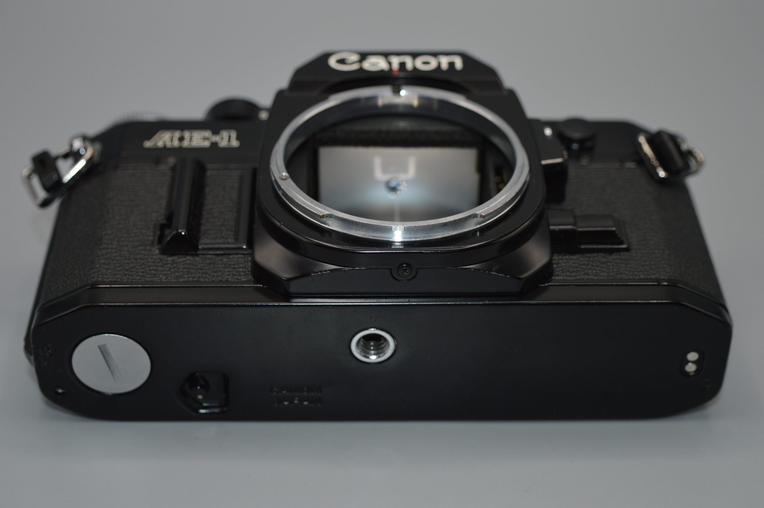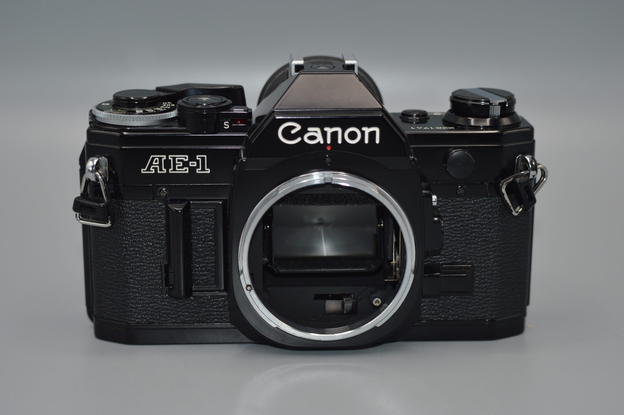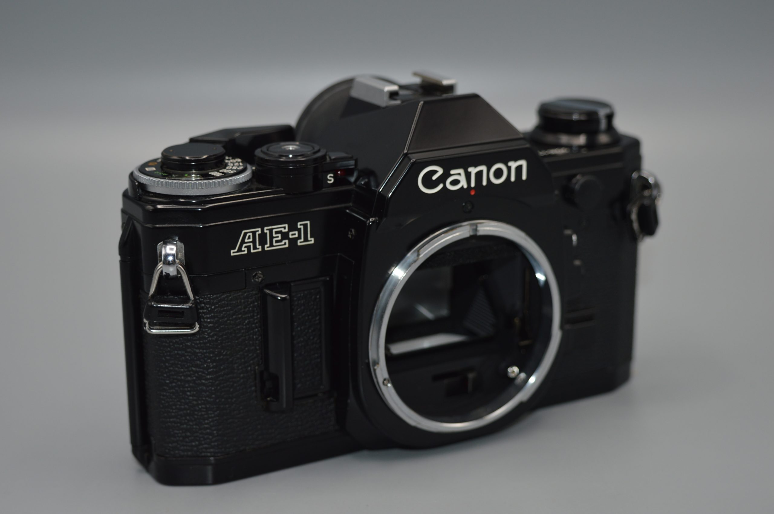 The Canon AE-1 is a 35 mm single-lens reflex (SLR) film camera for use with interchangeable lenses. It was manufactured by Canon Camera K. K. (today Canon Incorporated) in Japan from April 1976 to 1984. It uses an electronically controlled, electromagnet horizontal cloth focal plane shutter, with a speed range of 2 to 1/1000 second plus Bulb and flash X-sync of 1/60 second. The camera body is 87 mm tall, 141 mm wide, and 48 mm deep; it weighs 590 g. Most are black with chrome trim, but some are all black.